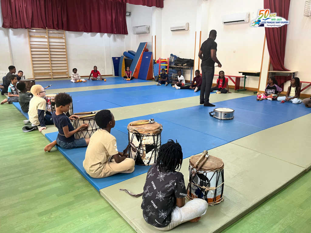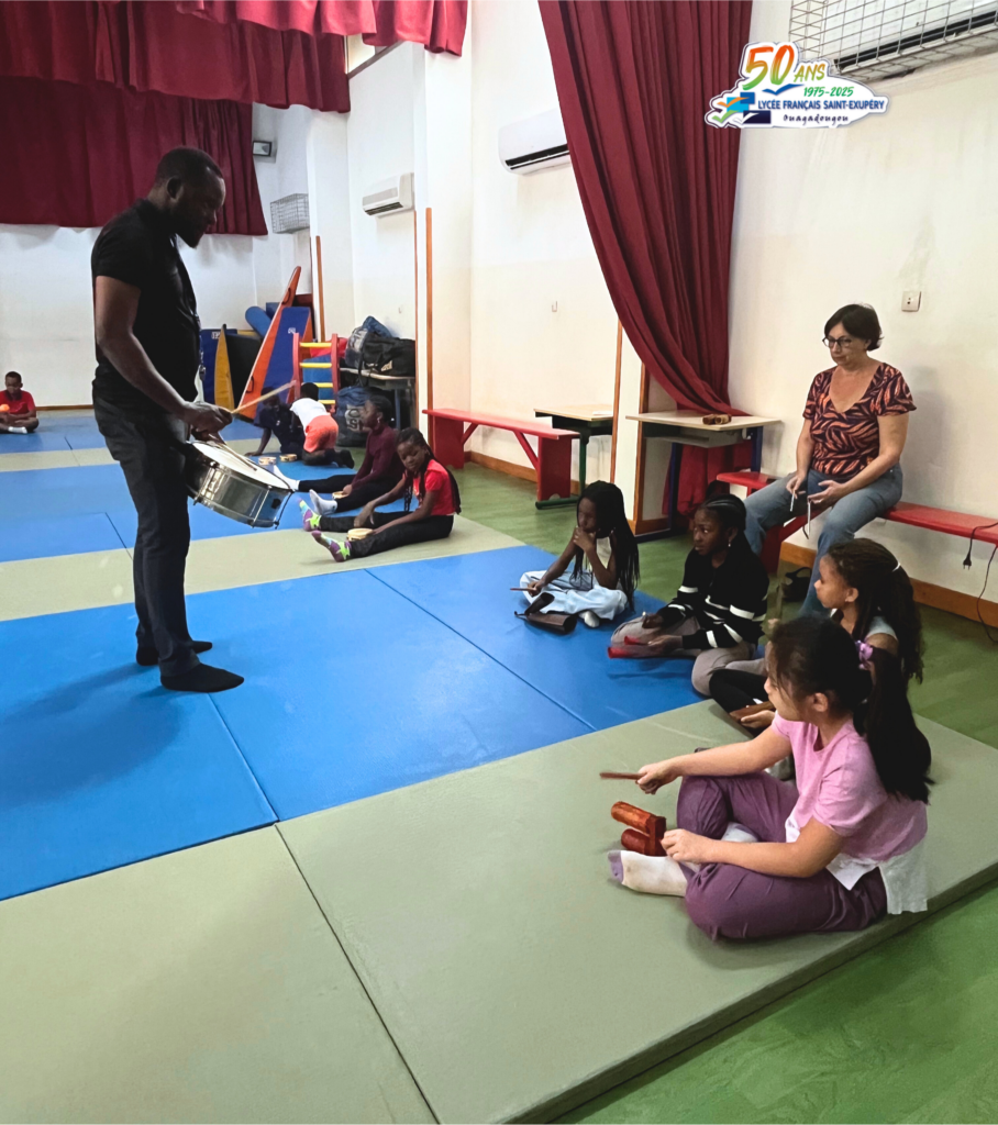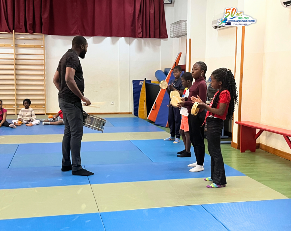 Dans le cadre de la préparation du spectacle de fin d’année, les élèves de CE2 de l’École primaire Saint-Exupéry de Ouagadougou participent à un projet artistique ambitieux : l’initiation à la batucada.